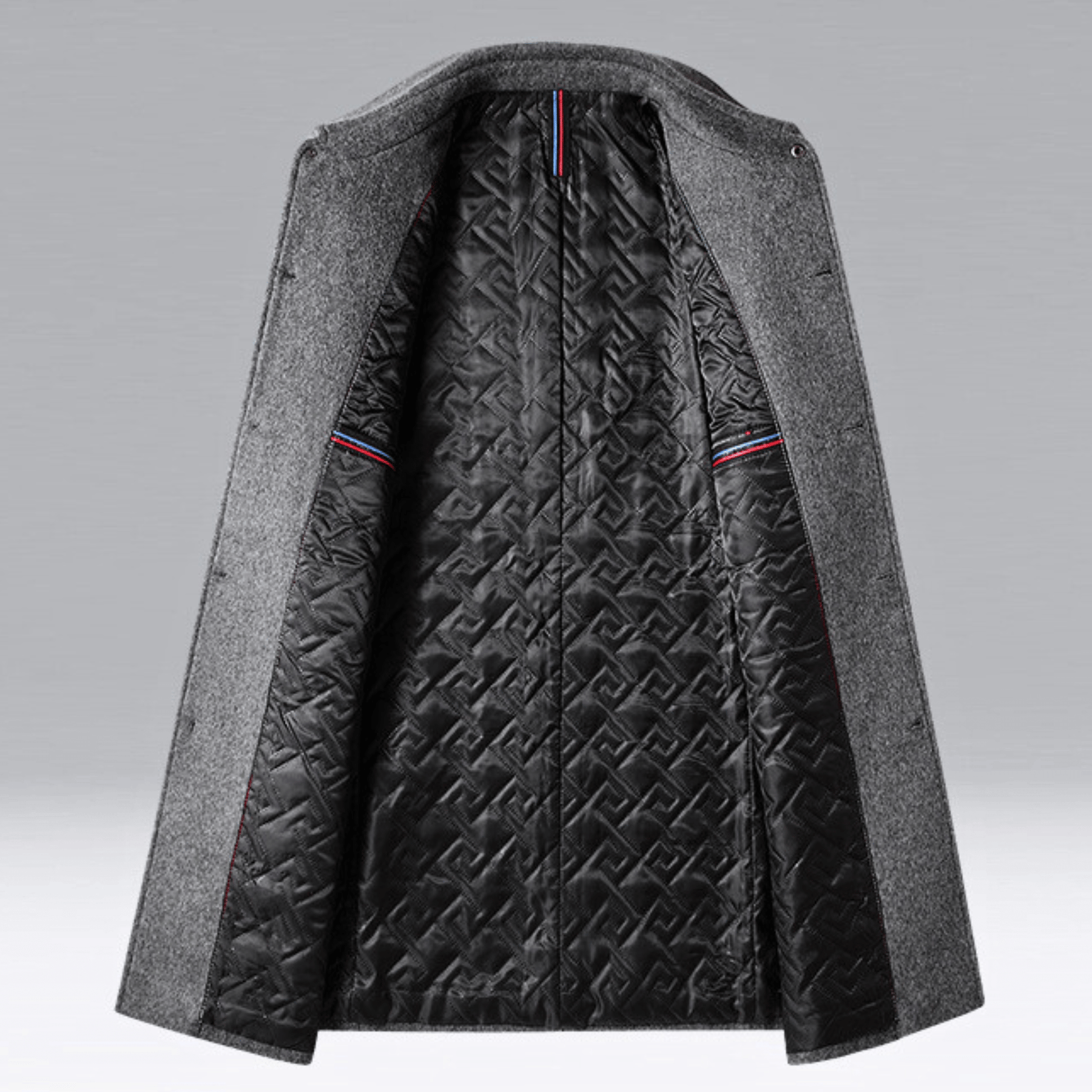 Confeccionado en lana premium con un corte largo y ajustado, que ofrece un estilo atemporal y calidez confiable. Diseñado con un clásico cuello de solapa y forro acolchado, es el equilibrio perfecto entre un estilo de negocios-casual y versatilidad para el día a día.