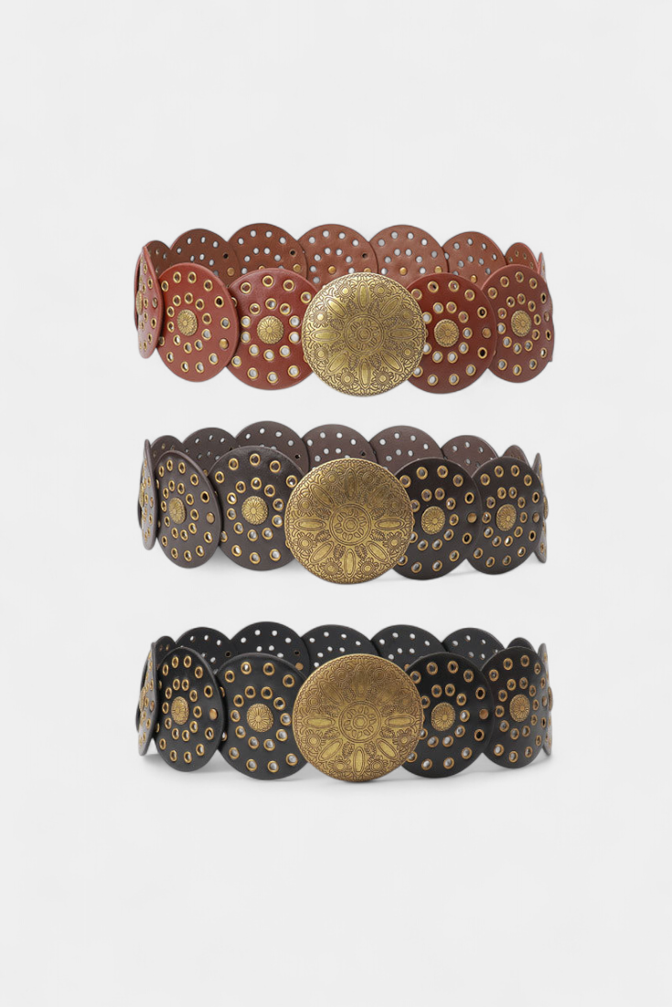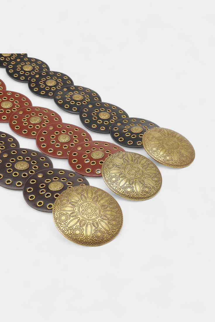 Alicia Cinturón Cowboy Vintage con Hebilla Circular Decorativa