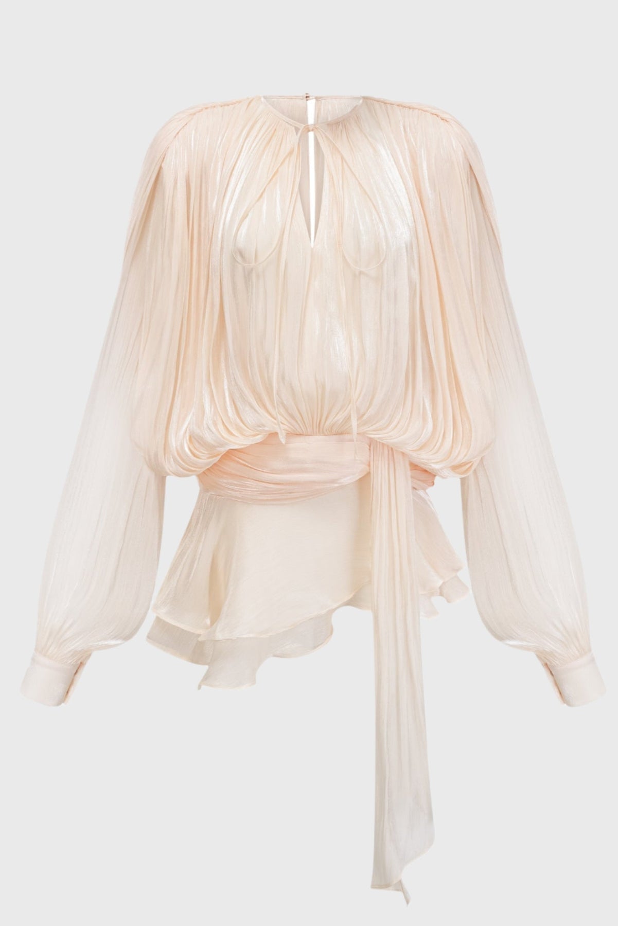 La elegancia moderna se encuentra con una textura juguetona en este vestido mini llamativo. Diseñado en un tono neutro suave, cuenta con tela completamente plisada, un detalle de torcedura favorecedor y delicados acentos de brillo que capturan la luz. La silueta drapeada se realza con hombreras para mayor estructura, mientras que los dobladillos con volantes añaden un toque femenino. Perfecto para eventos nocturnos o ocasiones especiales.